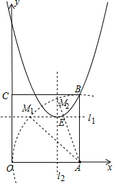 £¨2£©¢ÙÒÔAΪԲÐÄ£¬ÒÔ6Ϊ°ë¾¶»»¡£¬½»Ö±Ïßl1£ºx=4ÓëÖ±Ïßl2£ºy=4ÏཻÓÚµãM1¡¢M2£¬ÉèM1£¨m£¬4£©£¬M2£¨4£¬n£©£¬Çó³öm£¬n¼´¿É½â¾öÎÊÌ⣮¢Úµ±µãPÓëµãCÖØºÏʱ£¬µãMÓëBÖØºÏ£¬µãMÔÚÅ×ÎïÏßÉÏ£¬´ËʱP£¨0£¬6£©£»