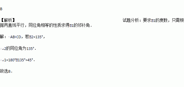 如图,把一块含有45°角的直角三角板的两个顶点放在直尺的对边上.如果∠1=15°,那么∠2的度数是( ).