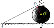 如图是置于水平地面上的一个球形储油罐,小敏想测量它的半径.在阳光下,他测得球的影子的最远点A到球罐与地面接触点B的距离是10米(如示意图,AB=10米);同一时刻,他又测得竖直立在地面上长为1米的竹竿的影子长为2米,那么,球的半径是___________米![]()