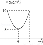 (2013•临沂)如图,正方形ABCD中,AB=8cm,对角线AC,BD相交于点O,点E,F分别从B,C两点同时出发,以1cm/s的速度沿BC,CD运动,到点C,D时停止运动,设运动时间为t(s),△OEF的面积为s(cm2),则s(cm2)与t(s)的函数关系可用图象表示为( )