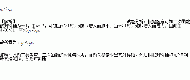 若点A(-3,y1)、B(0,y2)是二次函数y=-2(x-1)2+3图象上的两点,那么y1与y2的大小关系是________(填y1>y2、y1=y2或y1<y2).