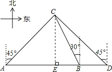 分析 先作CE⊥AD,根据BD=20,AE=DE,可求AE、CE的长,通过解直角△CEB得到BE的长度,从而求得AB的长.