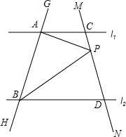 7.已知直线l1∥l2,直线GH分别交l1、l2于A、B两点,直线MN分别交l1、l2于C、D两点,点P在直线MN上(点P和C、D不重合).