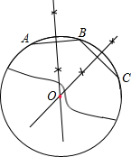分析:作弦AB、BC,然后做出AB、BC的垂直平分线,交点为O,然后画圆即可.