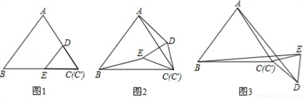 (2)操作:若将图1中的△C′DE,绕点C按顺时针方向任意旋转一个角度α,连接AD,BE,如图3;在图3中,线段BE与AD之间具有怎样的大小关系?证明你的结论;