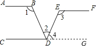 分析:延长CD,根据两直线平行,同旁内角互补表示出∠4,再根据两直线平行,内错角相等解答.