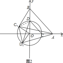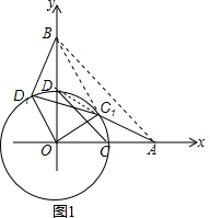 ∵过圆外B点与⊙O相切的直线有且只有2条,当切点C1 在第一象限时,在直角△BC1O中,D为斜边OB的中点,连接DC1,