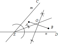 解答 解:①连接AB,作线段AB的垂直平分线;②作出∠CED的平分线,平分线与AB的垂直平分线的交点O.点O就是所求的点.