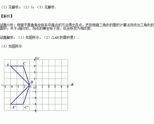 (1)描出A(- 4,3)B(-1,0)C(-2,3)三点.