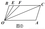 如图2,直线CB∥OA,∠B=∠A=108°,E、F在BC上,且满足