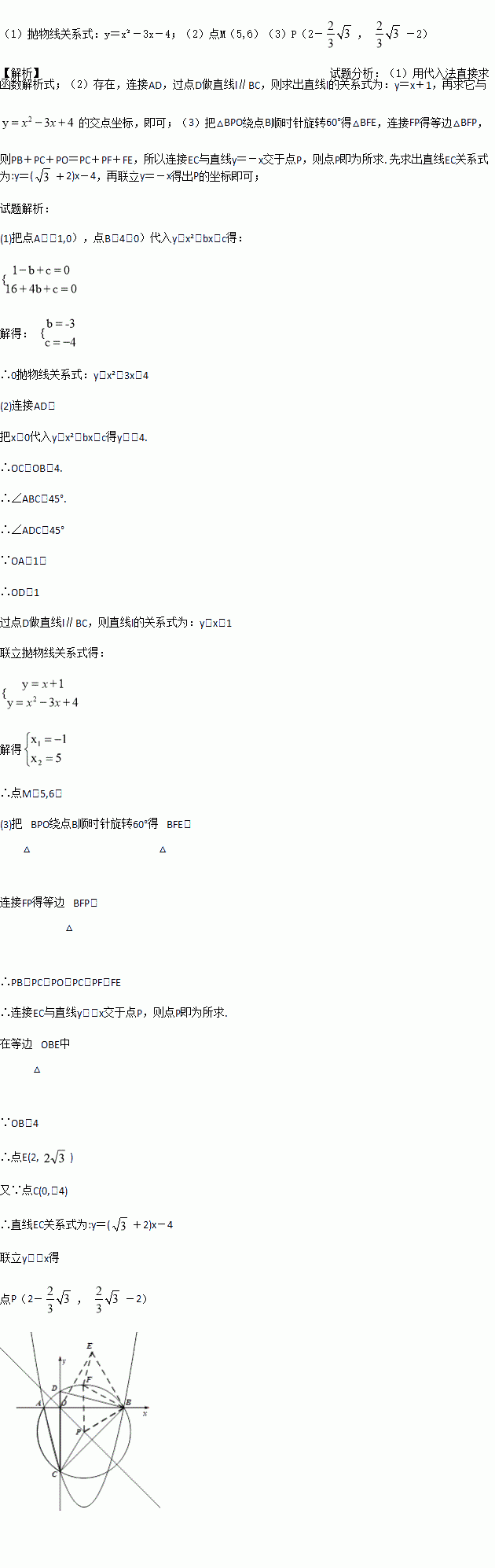 (2)△ABC的外接圆与y轴交于点D,在抛物线上是否存在点M使S△MBC=S△DBC,若存在,请求出点M的坐标.
