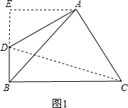 解答 解:(1)当A,D在BC同侧时,如图1所示,作AE⊥BD交BD的延长线于E,连结DC,