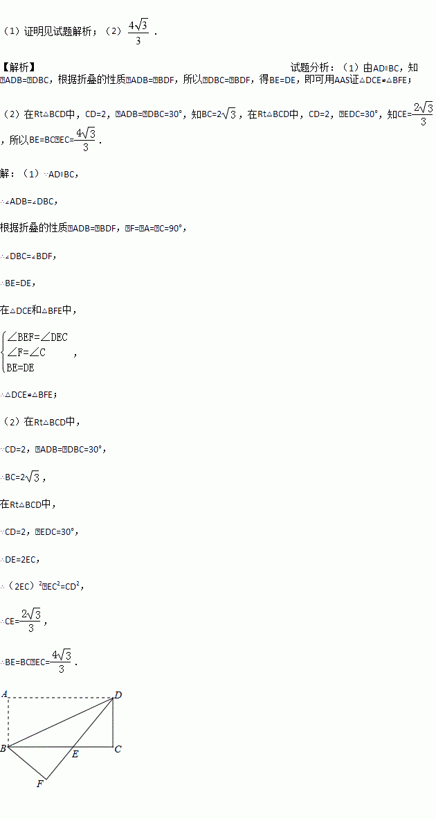 (2)若CD=2,∠ADB=30°,求BE的长.