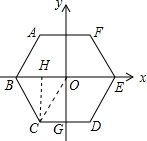 分析 连接OC,过点C作CH⊥x轴,垂足为H,易知CG=OH=1,在Rt△COH中,由正六边形的性质可得∠COH=60°,通过解直角三角形即可求得CH的长,也就得到了C点的坐标;同理可求得B、F的坐标,根据题意抛物线y=ax2+bx+c(a>0,b>0)经过正六边形的B、C、F三个顶点,然后用待定系数法即可求得该抛物线的解析式.