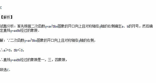 已知二次函数y=ax2﹣bx图象的开口向上且对称轴在y轴的右侧,则直线y=ax﹣b经过的象限是( )