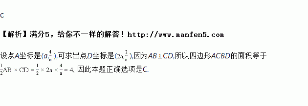 (x>0) 的图象交于点D。连结AC,CB,BD,DA,则四边形ACBD的面积等于( )