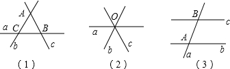 (1)直线a、b相交于点C,直线b、c相交于点A,直线a、c相交于点B;