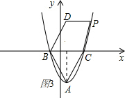 情况二:当DP为边时要使四边形CBDP为菱形,需DP∥BC,DP=BC,如图3,![]()