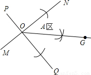 如下图,某铁路MN和公路PQ相交于点O,且夹角的锐角为60°,某仓库G在A区,到公路、铁路的距离相等(即点G在∠NOQ的平分线上),且到点O的距离为200米.