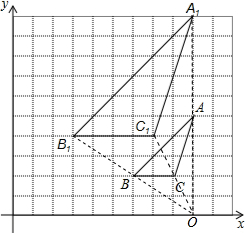 如图,已知图中的每个小方格都是边长为1的小正方形,每个小正方形的顶点为格点.若△ABC与△A1B1C1是位似图形,且顶点都在格点上,请你画出位似中心点O,并写出位似中心的坐标(保留作图痕迹).