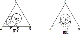 解:如图1,PF⊥AB于F,OE⊥AB于E,