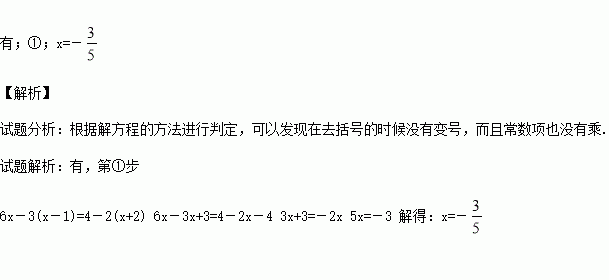 上述解方程的过程中,是否有错误?答: ;如果有错误,则错在________步。如果上述解方程有错误,请你给出正确的解题过程: