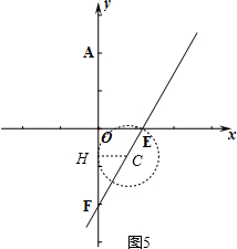 µ±Ô²ÓëyÖáÏàÇÐʱ£¬ÔòÇе㼴ΪÂú×ãÌõ¼þµÄµãH£¬Á¬½ÓCH£¬Èçͼ5£¬![]()