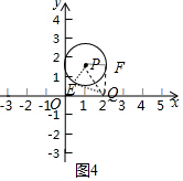 £¨3£©Èçͼ3ÖУ¬µ±µãQÓëµãOÖØºÏʱ£¬Éè¡ÑPÓëyÖáÏàÇÐÓÚµãE£¬OFÊÇ¡ÑPµÄÇÐÏߣ¬¿ÉÒÔÖ¤Ã÷¡ÏEQF=60¡ã£¬´ËʱQ£¨0£¬0£©£¬Èçͼ4£¬¸ù¾Ý¶Ô³ÆÐÔ¿ÉÖª£¬µ±FQ¡ÍxÖáʱ£¬¡ÏEQF=60¡ã£¬´ËʱQ£¨2£¬0£©£¬Óɴ˼´¿É½â¾öÎÊÌ⣮
