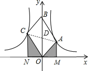 ∴S阴影=S△AMO+S△CNO=$\frac{1}{2}$|k1|+|$\frac{1}{2}$|k2|=$\frac{1}{2}$k1-$\frac{1}{2}$k2=$\frac{1}{2}$(k1-$\frac{1}{2}$k2),