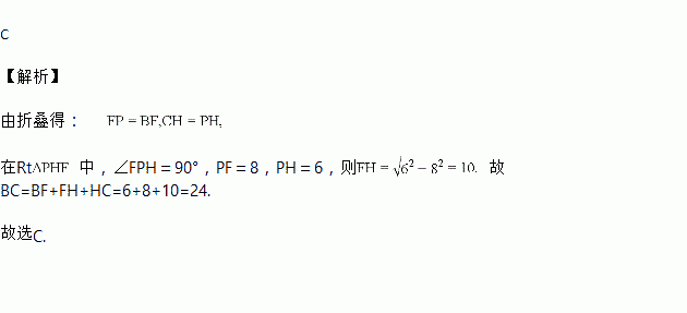如图,把长方形纸条ABCD沿EF,GH同时折叠,B,C两点恰好落在AD边的P点处,若∠FPH=90°,PF=8,PH=6,则长方形ABCD的边BC的长为( )