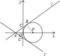过点A作l′与⊙P相切,与y轴的交点为C′,根据对称得C点坐标为(0,-