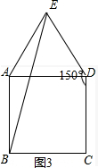 如图3,当α=150°时,AB=AE,则△EBA是等腰三角形;![]()