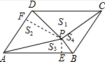 分析 (1)过点P分别作PF⊥AD于点F,PE⊥AB于点E,由于△APD以AD为底边,△PBC以BC为底边,得到此时两三角形的高的和为AD与BC的距离,根据三角形面积的求法得到S2+S4=$\frac{1}{2}$S四边形ABCD=30,同理可得出S1+S3=$\frac{1}{2}$S四边形ABCD=30,然后根据数量之间的关系即可得到结果;