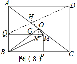 如图8,连接DQ,延长MO交DQ于H,
