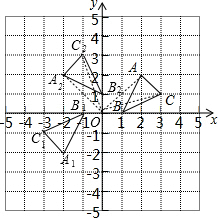 分析 (1)利用关于原点中心对称的点的坐标特征写出A1、B1、C1的坐标,然后描点即可得到△A1B1C1;(2)利用网格特点和旋转的性质画出点A、B、C的对应点A2、B2、C2,从而得到△A2B2C2.