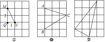 分析 (1)如图①,在直角三角形MQN中,利用勾股定理求出MN的长为$\sqrt{5}$,故MN为所求线段;