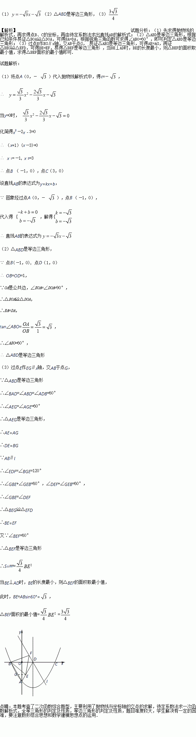 (3)点E在线段AD上运动且与点A、D不重合,点F在直线l上运动,且∠BEF=60°,连接BF,求出△BEF面积的最小值.