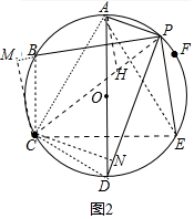(2)如图2中,连接AC、AE、EC、BC、CD、PC,在PC上截取PH=PA,连接AH,作CN⊥PD于N,CM⊥PB于M.![]()