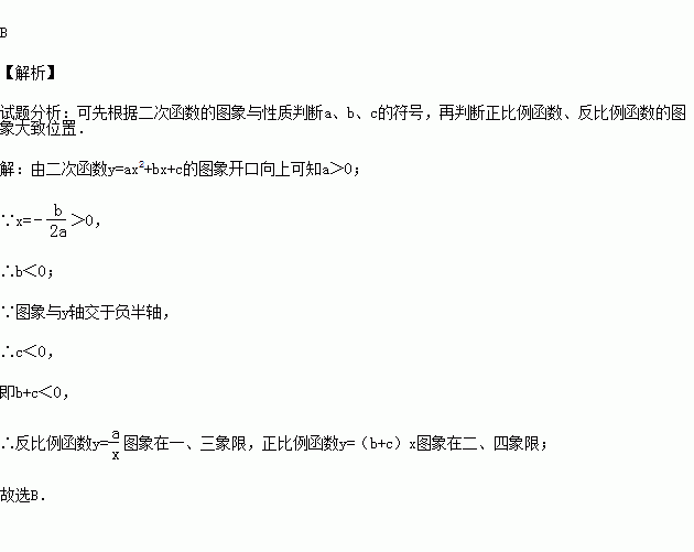 与正比例函数y=(b+c)x在同一坐标系中的大致图象可能是( )