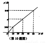 随着“中国诗词大会”节目的热播,《唐诗宋词精选》一书也随之热销.如果一次性购买10本以上,超过10本的那部分书的价格将打折,并依此得到付款金额y(单位:元)与一次性购买该书的数量x(单位:本)之间的函数关系如图所示,则下列结论错误的是( )