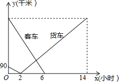 17.在一平直公路上依次有A、C、B三地,客车、货车分别从A、B两地同时出发,匀速相向行驶.货车2小时可到达途中C站,14小时到达A地,客车需6小时到达C站.已知客车、货车到C站的距离与它们行驶时间x(小时)之间的函数关系如图所示,客车的速度比货车的速度快45千米/小时.