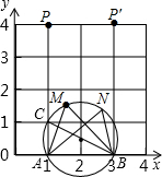 (2)请用直尺与圆规在第一象限内找到两个点M、N,使∠AMB=∠ANB=∠ACB.请保留作图痕迹,不要求写画法.