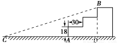 如图,某公园入口处原有三级台阶,每级台阶高为18cm,深为30cm,为方便残疾人士,拟将台阶改为斜坡,设台阶的起点为A,斜坡的起始点为C,现设计斜坡BC的坡度i=1∶5,则AC的长度是 cm.