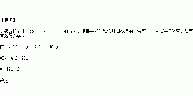 (2015秋•岱岳区期末)化简4(2x﹣1)﹣2(﹣1+10x),结果为( )
