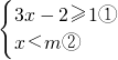 由①得:3x≥3,