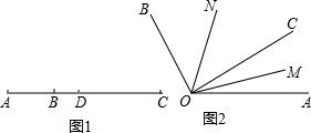 (2)如图2,OC是∠AOB内任一条射线,OM、ON分别平分∠AOC、∠BOC,若∠AOB=100°,请求出∠MON的大小.