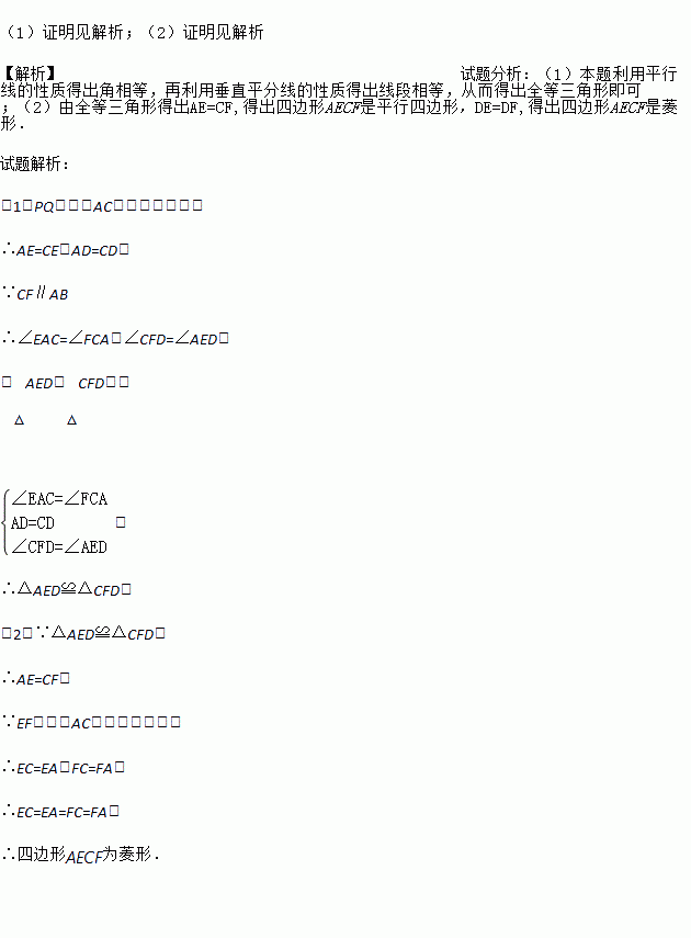 如图,在△ABC中, PQ是CA的垂直平分线, CF∥AB交PQ于点F,连接AF.