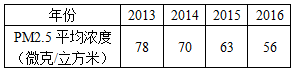 (2)2013-2016年PM2.5平均浓度如下表所示,![]()