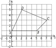 如图,在平面直角坐标系中,四边形ABCD各顶点的坐标分别为A(0,1)、B(5,1)、C(7,3)、D(2,5).