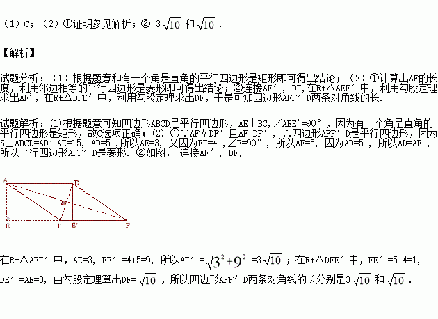 (1)Èçͼ1£¬Ö½Æ¬¡õABCDÖУ¬AD=5,S¡õABCD=15,¹ýµãA×÷AE¡ÍBC,´¹×ãΪE,ÑØAE¼ôÏ¡÷ABE,½«ËüÆ½ÒÆÖÁ¡÷DCE¡äµÄλÖã¬Æ´³ÉËıßÐÎAEE¡äD,ÔòËıßÐÎAEE¡äDµÄÐÎ״Ϊ£¨ £©